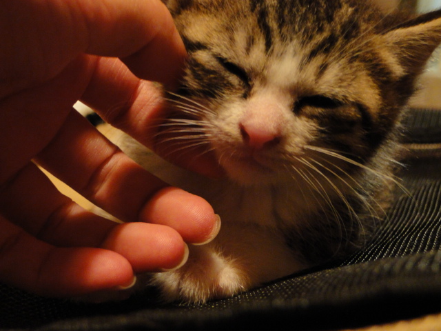 ほ~ら、すぐ撫でてもらえるにゃ。