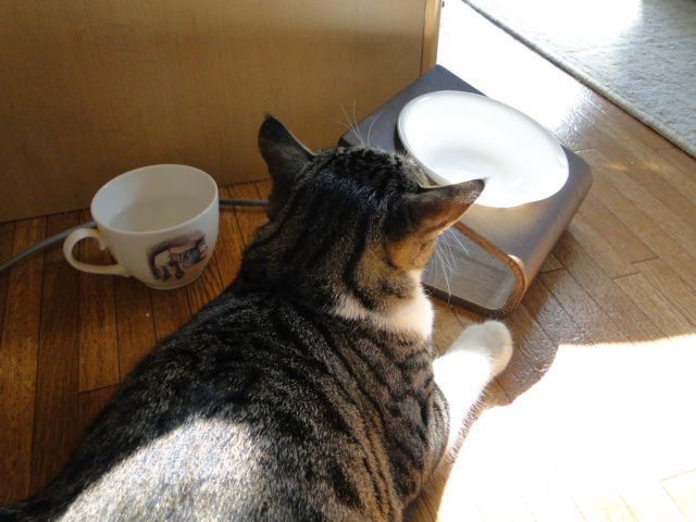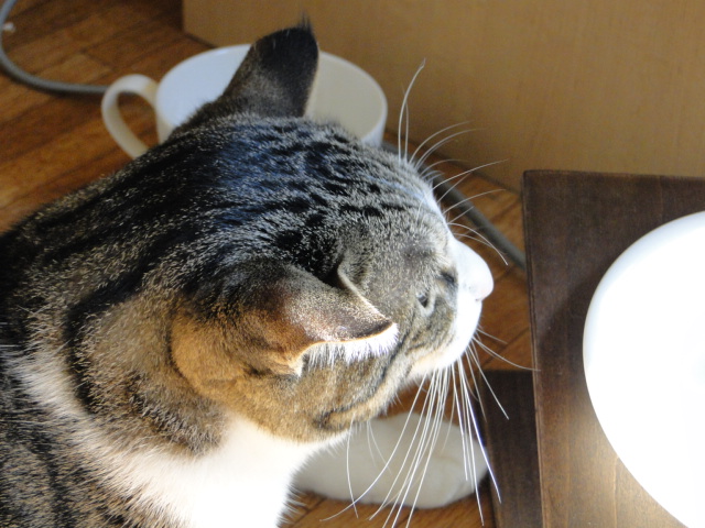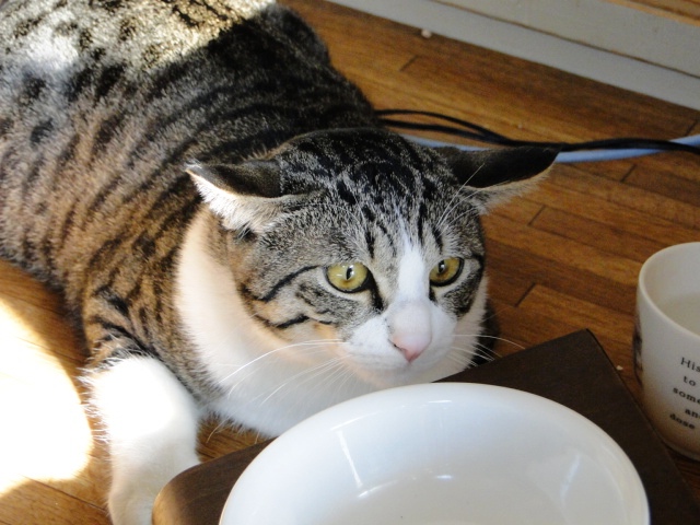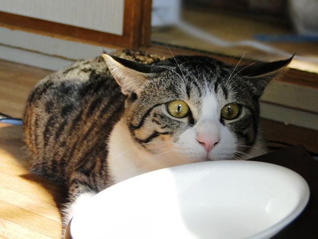 お皿の所にしっかり本猫は隠れてるつもりなんだろうけど見えてるのがおかしいです。