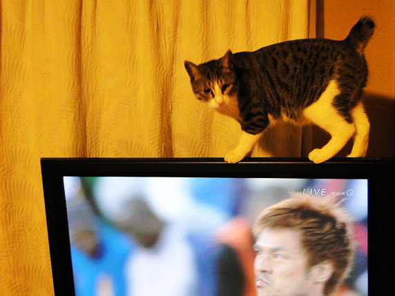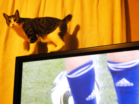 薄いテレビの上で右往左往するだいちゃんがうけます^^