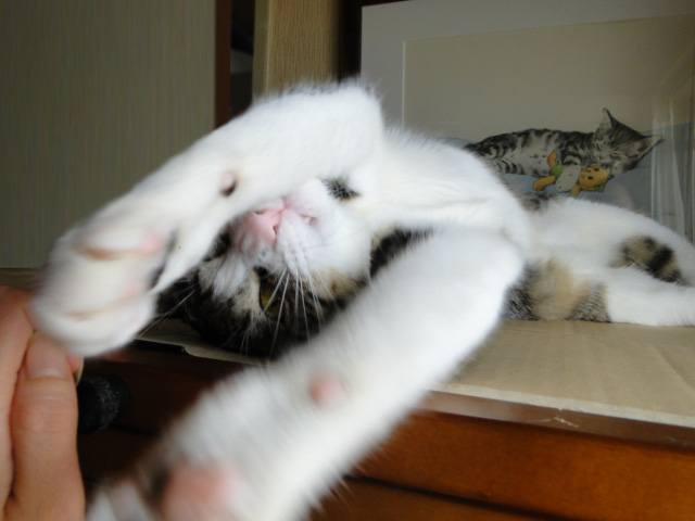 最後は強烈な猫キックでって(汗)