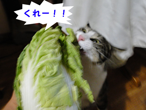 それにしても白菜に喰らいつく猫様なんて初めて見ました。