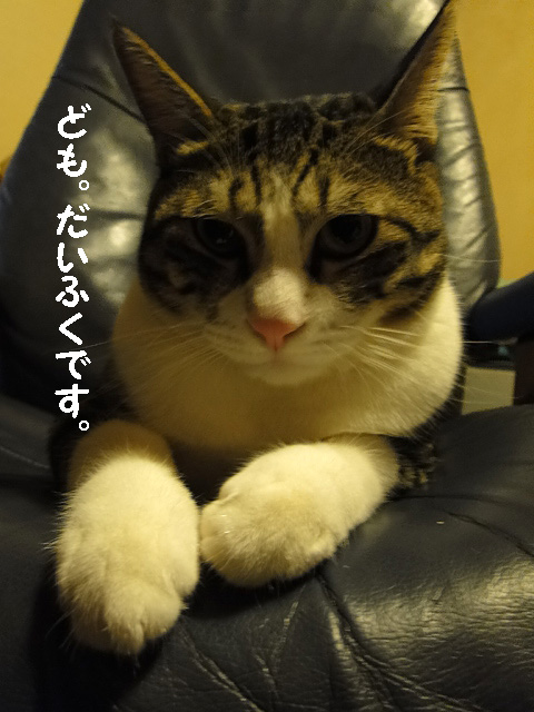 夫が家にいるとすぐに餌をねだってすぐ夫のスネに食いつきます。