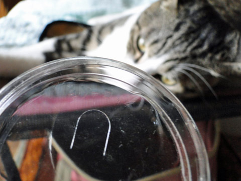 ちなみにだいふくはハーゲンダッツのフタやワインのコルクでも遊びます。