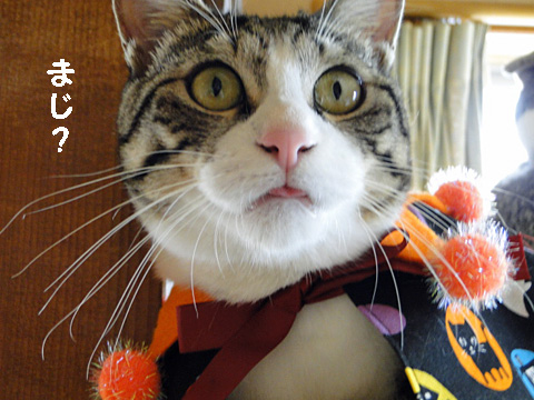 本猫は「ぴや君とハロウィンぱーちーするっ!」と言っていますが、