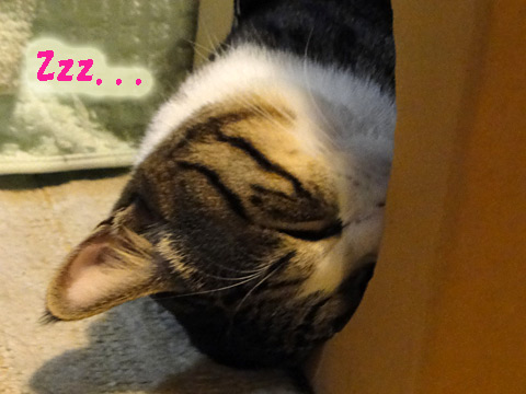 巣ごもり猫、ついつい寝顔を確認したくなりますよね^^