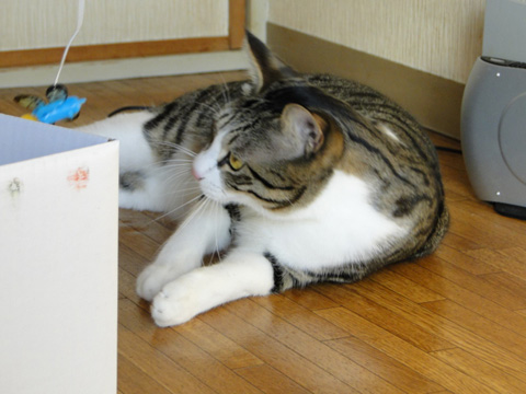 試行錯誤のヒトをよそに、猫は高いびき。