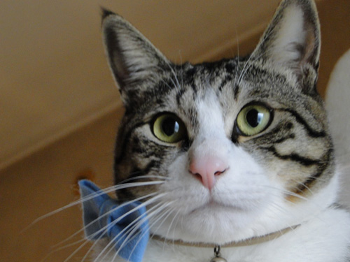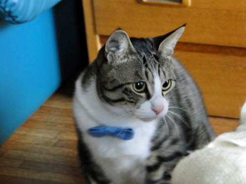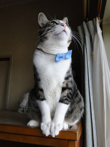 だいふく君、青の蝶ネクタイが