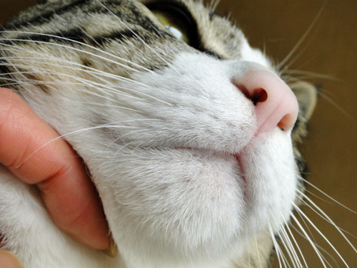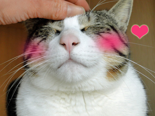 撫でられて潰れた顔がなんともいえないわ~気持ちよさそう。