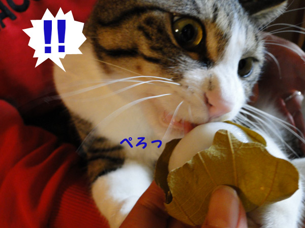 けど、お餅に反応したのか、葉っぱに反応したのか・・・( ̄ヘ ̄;)ウーン謎w