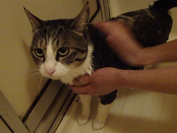 前猫も短毛だったけど濡れるとすんごい細くなったのに、