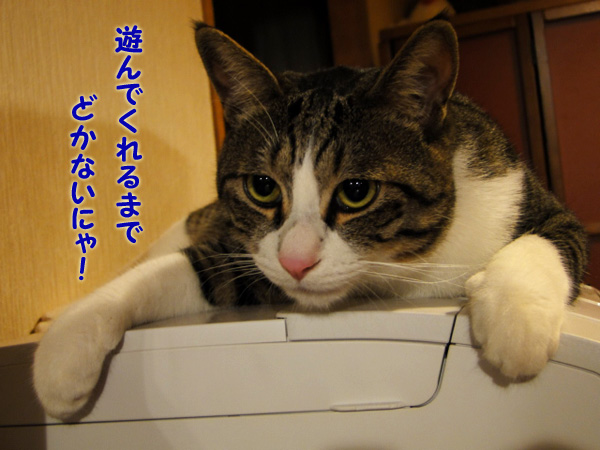 遊んでくれるまでどかない!だなんてそこに乗られると困るのよくわかってるんだね(笑)