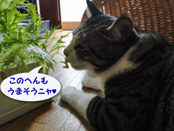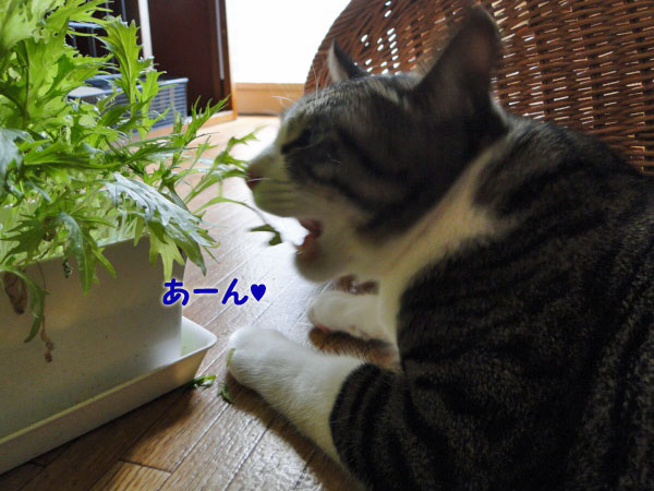 うちも、猫草は先だけ食べるから、すぐ枯れるし(笑)