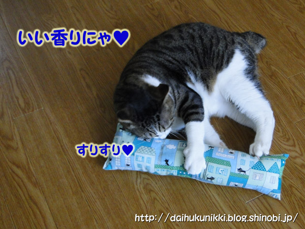 中に綿とマタタビを入れる時だけは、だいふくのいない所でこそっと^m^