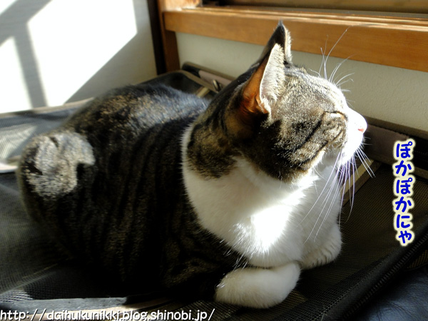 そうそう、日向ぼっこじゃなくて窓際警備(笑)