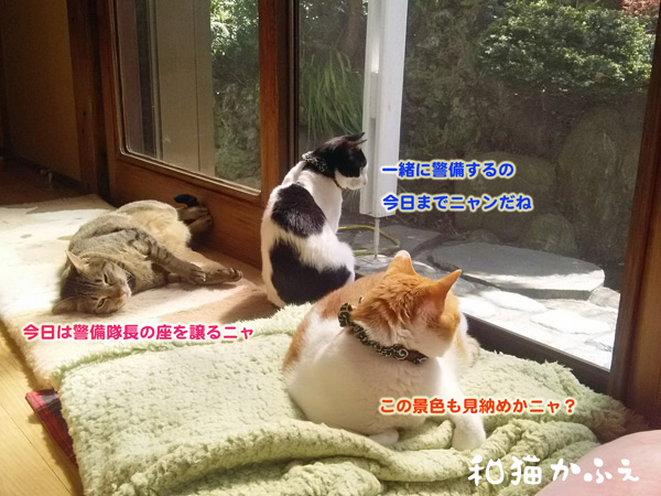お届け当日の朝もいつも通り縁側に一番乗りして他の猫達と共に 出発直前まで警備をしていました。