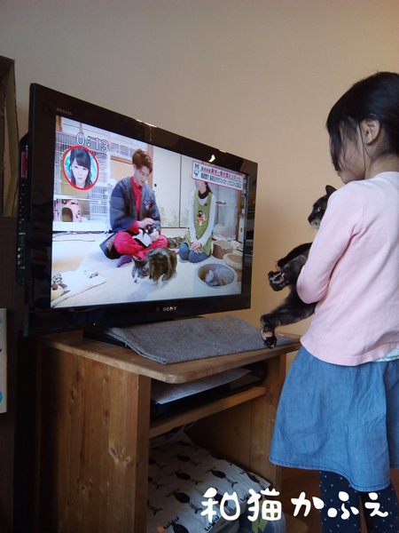 先日のTVK『猫のひたいほどワイド』をお嬢さんに見せてもらっているわさびちゃん